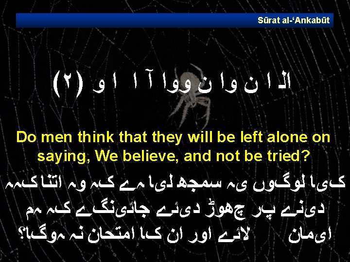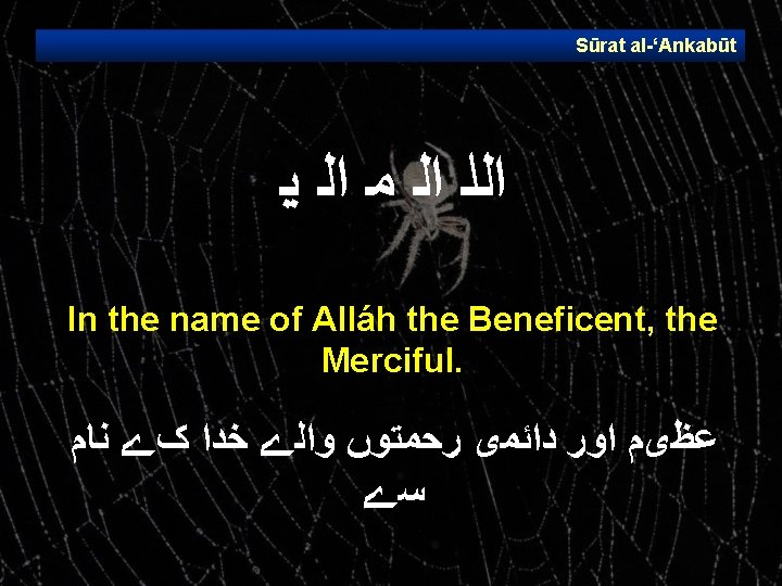 Sūrat al ‘Ankabūt (١) ﺍﻟﻢ Alif Lam Mim. ﺍﻡ