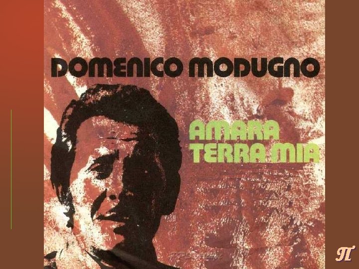 Amara terra mia Amarga tierra mía Sole alla valle e sole alla collina. Per le campagne non c'è più nessuno. Sol en el valle y sol en las colinas, Ya en los campos no se ve ninguno Ritornello: Addio, addio amore, io vado via. Amara terra mia, amara e bella. . . Estribillo: Adiós, adiós amor también me voy Amarga tierra mía amarga y bella… Cieli infiniti e volti come pietra. Mani incallite ormai senza speranza. Cielo infinito y rostros como piedras Manos callosas, ahora sin esperanza. {Ritornello} {Estribillo} Tra gli uliveti è nata già la luna. Un bimbo piange, allatta a un seno magro. Tras los olivos nació ya la luna Un niño llora sobre un pecho seco {Ritornello} {Estribillo} Domenico Modugno Click para continuar