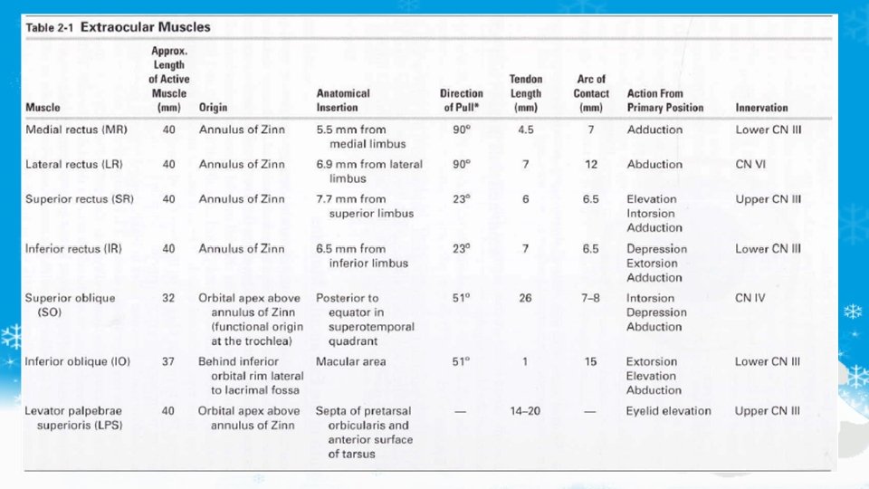 Actions of the EOM from Primary Position Muscle Primary Secondary Tertiary Medial Rectus Adduction - - Lateral Rectus Abduction - - Inferior Rectus Depression Extorsion Adduction Superior Rectus Elevation Intorsion Adduction Inferior Oblique m. Extorsion Elevation Abduction Superior Oblique m. Intorsion Depression Abduction The superior muscles are intortors; the inferior muscles, extortors. The vertical rectus muscles are adductors; the oblique muscles, abductors