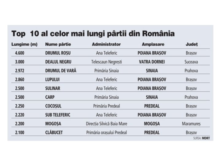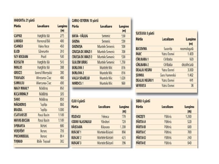 Sursa: http: //www. zf. ro/companii/harta-partiilor-de-schi-din-romania -130 -de-partii-cu-o-lungime-de-116 -kilometri-cat-domeniul-schiabil -dintr-o-statiune-austriaca-9060372/poze/? p=7 Harta pârtiilor de schi din România: 130 de pârtii cu o lungime de 116 kilometri, cât domeniul schiabil dintr-o staţiune austriacă