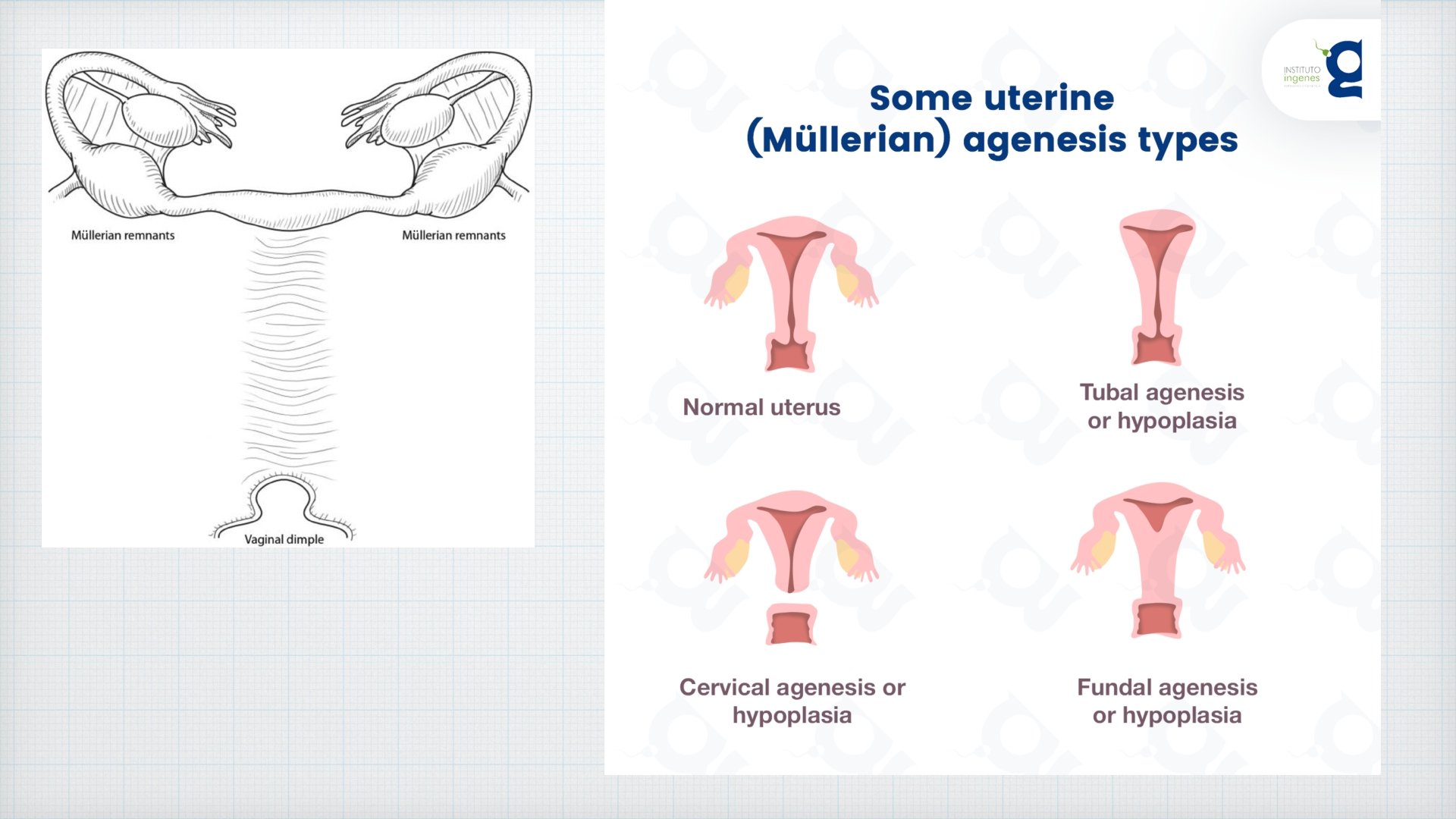 Uterine causes 5% : 1 - Müllerian agencies : Mayer– Rokitansky–Küster–Hauser syndrome (MRKH) congenital malformation characterized by a failure of the Müllerian duct to develop, resulting in a missing uterus and variable degrees of vaginal hypoplasia of its upper portion. there anomalies within the uterus or vagina, please make sure to investigate the urinary tract for anomalies ( due to embryological origins ) by intravenous pyelogram or diagnostic radiography.