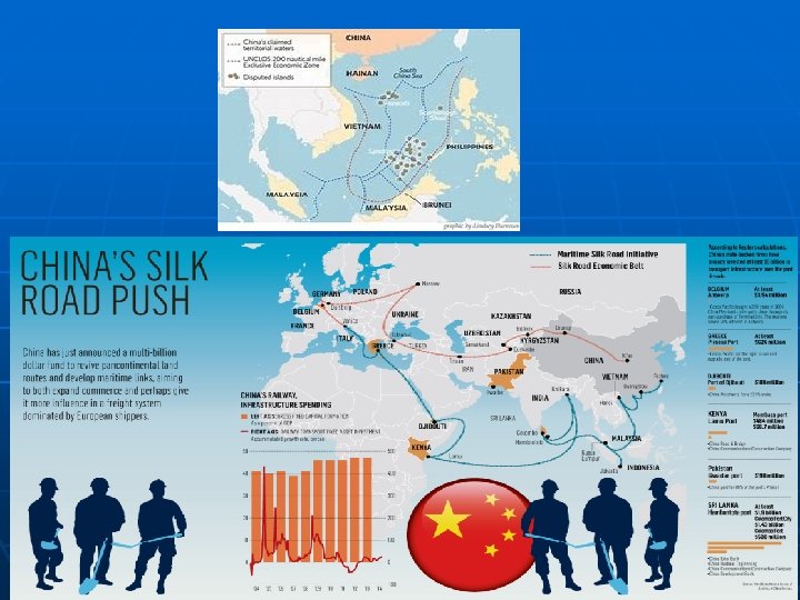The rise of China from 1979 n n n Becoming prosperous by exporting consumer goods to West (Open Policy) Spending 10 -20% of budget on military Modernizing platforms and doctrines Improving missiles and nuclear weapons Extending Navy deployments to Indian O. Claiming large parts of East and South China Seas Negotiating trade agreements with Asian neighbours Resisting US advocacy of democracy Holds much of US debt via Treasury bonds Tolerant of US military presence in Asia…but how long will that last? Potential rival to US leadership in Asia?