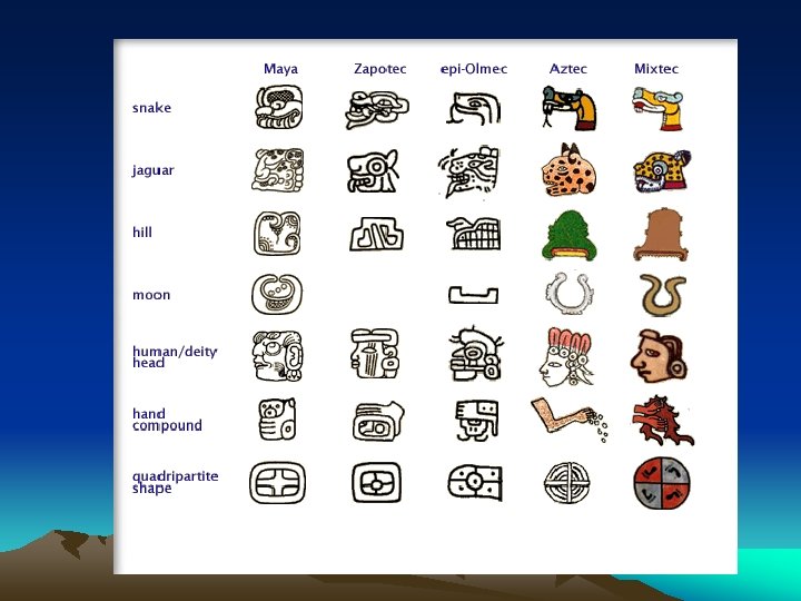 Zapotec • Develop 3 very important things – Calendar based on the movement of the sun – Hieroglyphic Writing System – First planned cities mixing residential and religious buildings