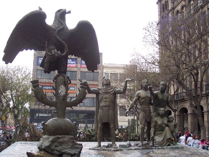 The Aztec Empire is part of Mexico today. According to Aztec legend, the gods told the nomadic people who had entered the Valley of Mexico to search for an eagle peached on the top of a cactus. The eagle would be holding a snake in its beak. When they saw the sign on a swampy island in Lake Texcoco they established the city of Tenochtitlan Mexico’s Flag