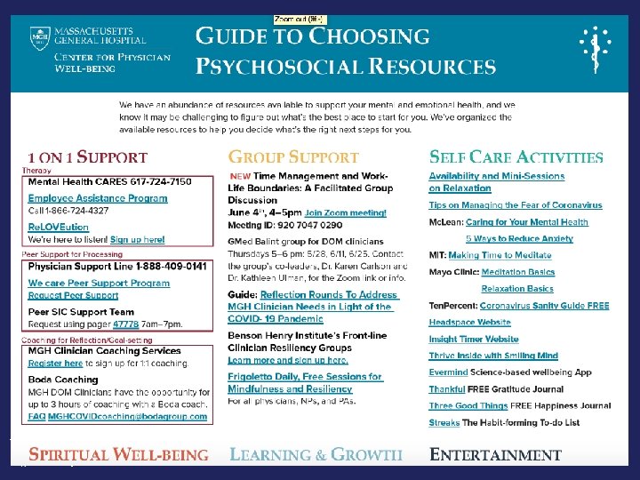 Additional Resources • COVID-19 ACP Physician's Guide Clinician Well-being Resources • Features resources dedicated to personal resilience, crisis lines and counseling support, institutional and team well-being, grief management, and more • CME-eligible ACP Well-being webinars • COVID-19: Practical Support from Internists on the Front Lines • Mini But Mighty Skills for Well-being • Positive Psychology in Times of Crisis • COVID-19 Administrative and Regulatory Relief Advocacy • Advocating for administrative and regulatory relief to remove unnecessary burden on physicians so they are able to focus their efforts on addressing the COVID-19 crisis • Asking HHS to make a targeted allocation from the Provider Relief fund to primary care physicians and other clinicians to help them weather the COVID 19 pandemic and help remove financial strains on primary care practices • Created a Chapter Advocacy Toolkit that features resources and calls to action that ACP chapters can use to advance policies at the state level Please contact acpwellbeing@acponline. org for any questions, comments, or suggestions