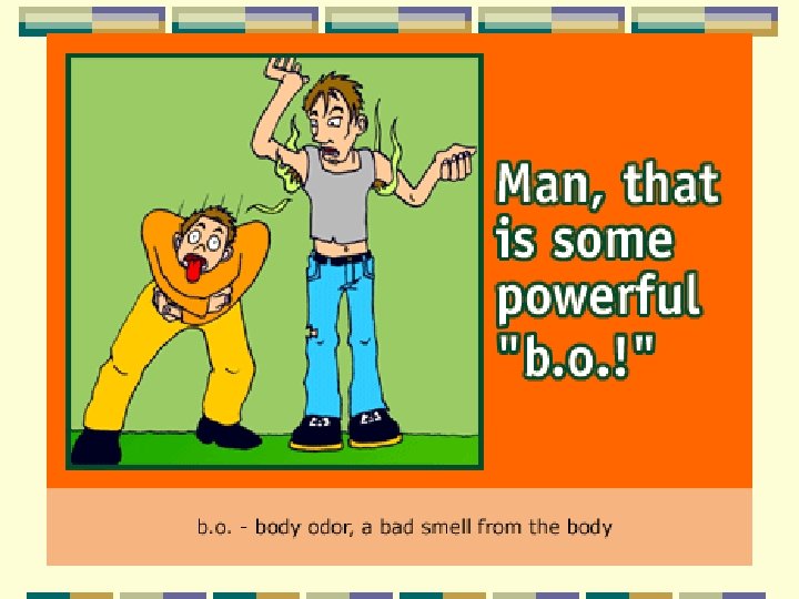 You’ve got ________ - but I like you anyway! a. lots of flab (fat) b. a jelly belly a. love handles Unsightly fat around the waist