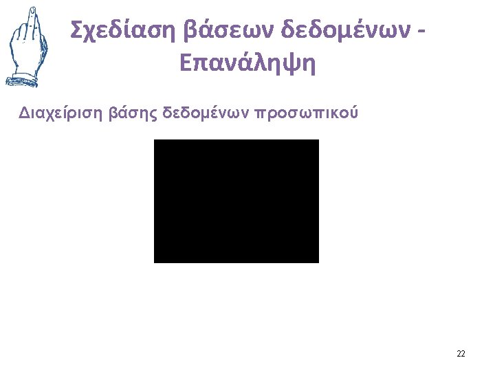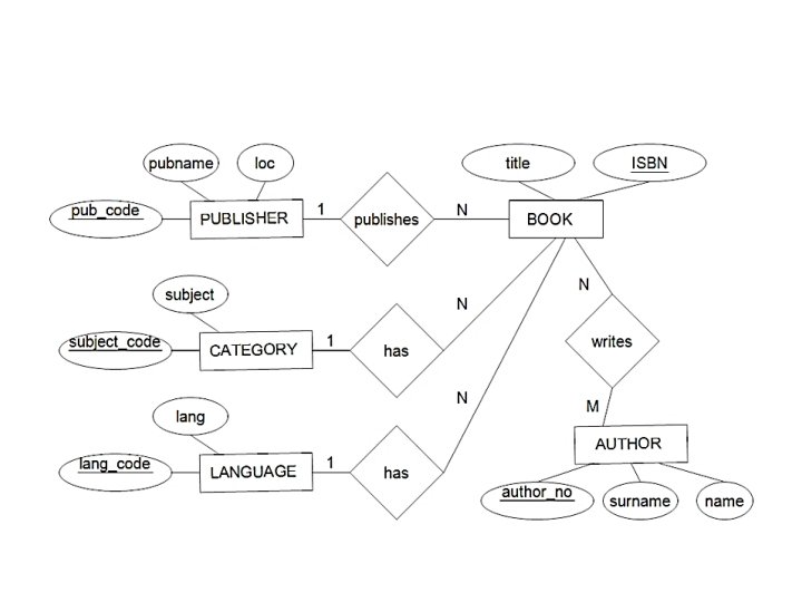 Απλοποιημένη βιβλιοθήκη • BOOK(ISBN, Title, Pub_code, Subject_code, Lang_Code) • AUTHOR (Author_No, Surname, Name) • CATEGORY (Subject_Code, Subject) • WRITER (ISBN, Author_No) • PUBLISHER (Pub_code, pubname, Loc) • LANGUAGE(Lang_Code, Lang)