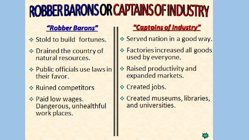 You decide: • Vanderbilt, Rockefeller, Carnegie, Morgan Robber Barons or Captains of Industry?