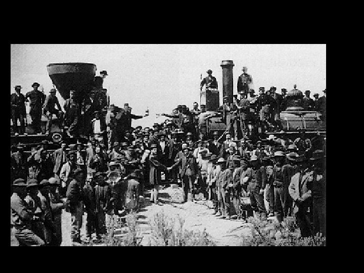Transportation Revolution • After the Civil War, railroad production grew enormously, from 35, 000 mi of track laid in 1865 to a whopping 192, 556 mi. of track laid in 1900. • Transcontinental Railroad • Pacific Railway Act – congress authorized a transcontinental railroad • Union Pacific (Greenville Dodge) – Started east and went west Mostly Irish workers Easier job because of flat land Dangerous job because fo Indian Attacks • Central Pacific (Leland Stanford) – Started west and went east Mostly Chinese workers Tougher job because of mountains • The Two met in Promontory, Utah in 1869
