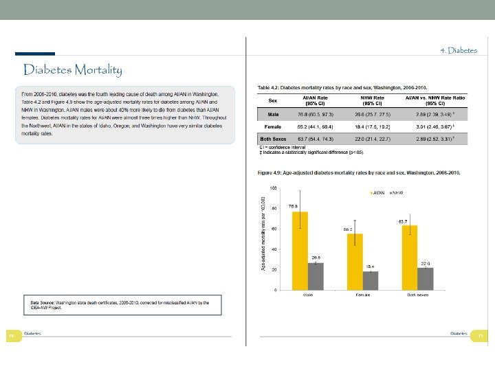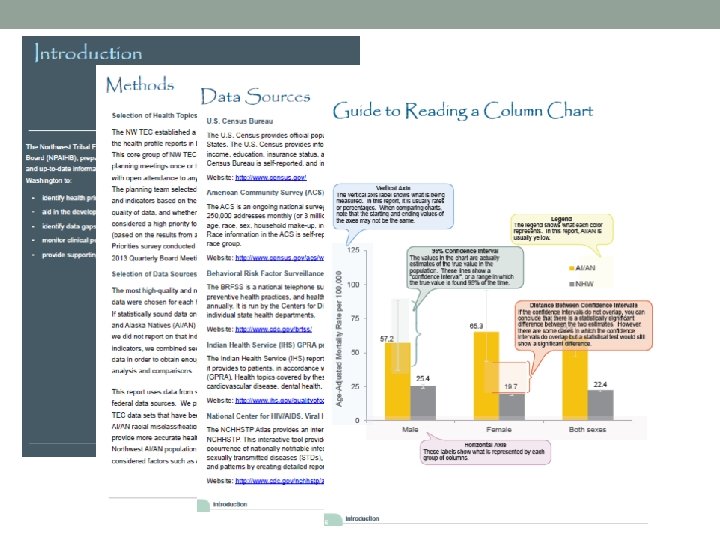 Changes based on feedback we heard • When possible, included data on trends and age-specific results • Added maps showing mortality rates ((3 states) and hospitalization rates (WA & OR) by geographic area • Added section summaries at beginning of each chapter– tried to synthesize data findings and provide more context • Added program highlights – NPAIHB projects that are addressing health issues/disparities Northwest Portland Area Indian Health Board