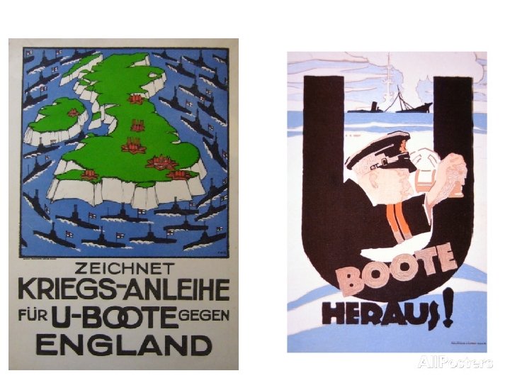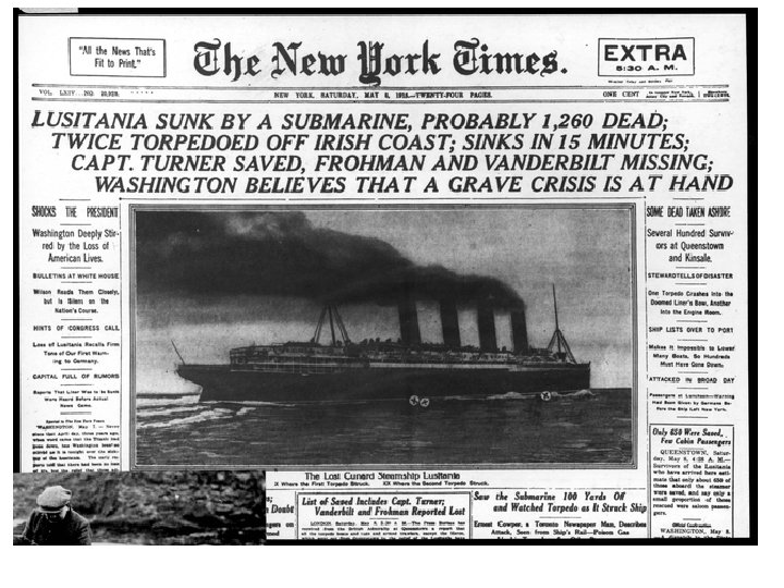 USA U-boat (Unterseeboot) – submerged vessel capable of surprise attacks on merchant/naval shipping. Undetectable. No warning, no mercy! U-boat vs. blockade. Moral high ground? Transatlantic cable – connects US to England, Germany, France. Communication. England cuts cable from Germany to US. War info solely comes from England.