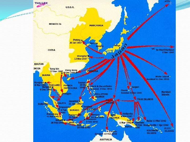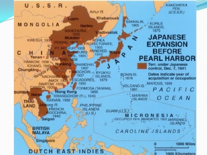 Japan invades China �In 1937, the Japanese militarists touched off an explosion that led to the all-out invasion of China. �President Roosevelt refused to call the "China incident" an officially declared war. �The Japanese, as a result, were able to continue to buy war supplies in the United States. �In 1937, Japanese planes sunk an American gunboat, the Panay. �Tokyo was quick to make apologies and the United States accepted.