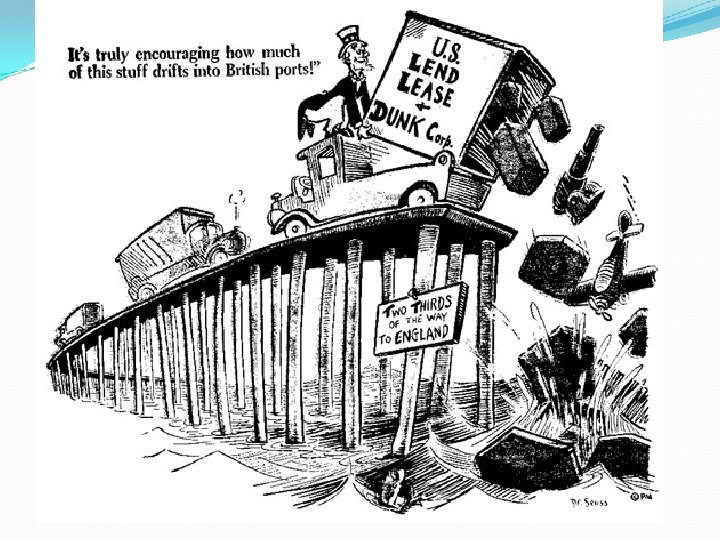 Lend-Lease Bill �Passed fearing the collapse of Britain �American arms could be leased to democracies who needed them. �Abandoned neutrality �Hitler – “unofficial declaration of war” �Robin Moor – merchant ship destroyed by German submarine