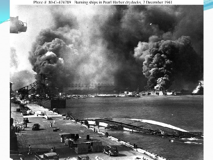 “A Day That Will Live in Infamy. ” �Japan had been allied with Germany. �Washington imposed the first of its embargoes on Japan-bound supplies in 1940. �Asked Japan to move out of China �On "Black Sunday" December 7, 1941, Japanese bombers attacked Pearl Harbor, killing 2, 348 people. �On December 11, 1941, Congress declared war.