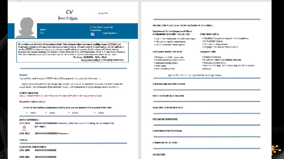 Summary • Which roles? • Fix your CV - Recommendation(s) - Profile - Career goal - Key competences • Fix your linked. In - Title - ”Looking for new opportunities” - Add contacts - Who has visited? - Skills and endorsements • Network - Attend congresses and seminars • Extra competence?