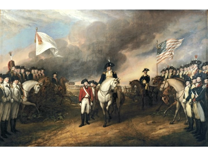 Yorktown • Cornwallis pursued the Americans into Virginia but met with heavy resistance. • Wishing to maintain communications with Great Britain by sea, the British general retreated to the • coastal town of Yorktown • His forces were attacked by the combined French and American armies and a French fleet. • Cut off from any reinforcements, Cornwallis was forced to surrender • American Revolution came to an end in North America.