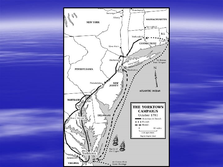 Yorktown § General Cornwallis – British planned to take over Virginia because he had conquered the majority of the southern colonies and was working his way north § Led his army to a peninsula at Yorktown § 1780 The French had arrived to the colonies