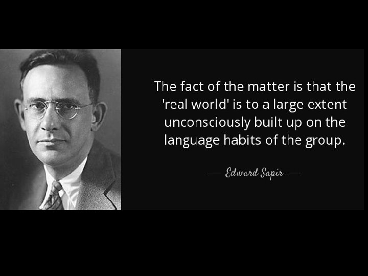 “The worlds in which different societies live are distinct worlds, not merely the same world with different labels attached. . . We see and hear and otherwise experience very largely as we do because the language habits of our community predispose certain choices of interpretation. ” ― Edward Sapir