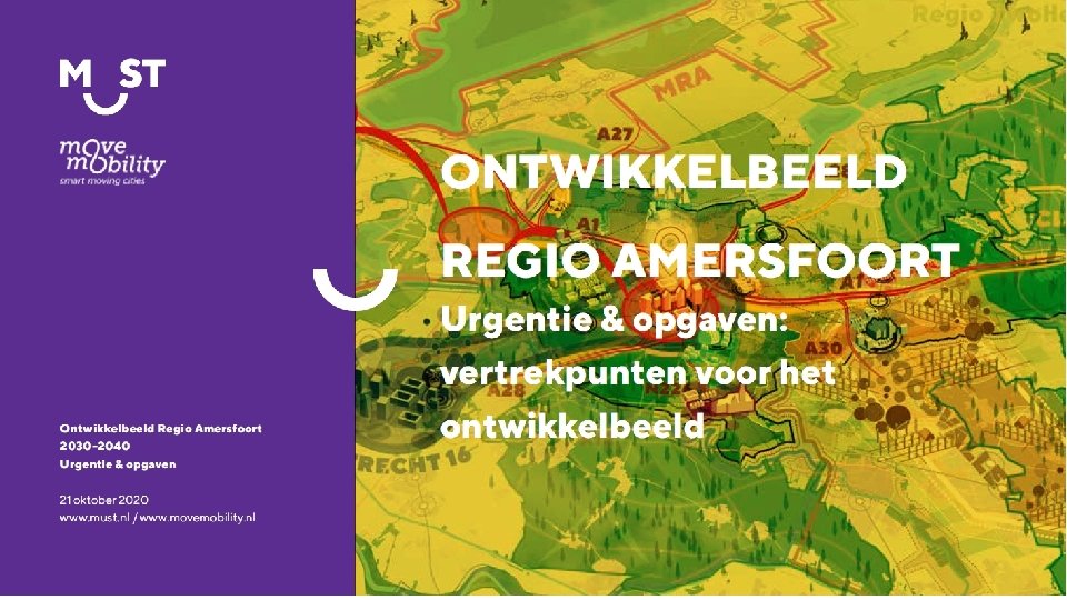 Betrekken van stad en regio • Oogst fase 1 is besproken met o. a. VNO-NCW, woningcorporaties, LTO en NMU • In fase 2 online consultatie belanghebbenden over de scenario’s • Informeren lokale partners en stakeholders • Stadsgesprek lange termijn verstedelijking Amersfoort begin 2021