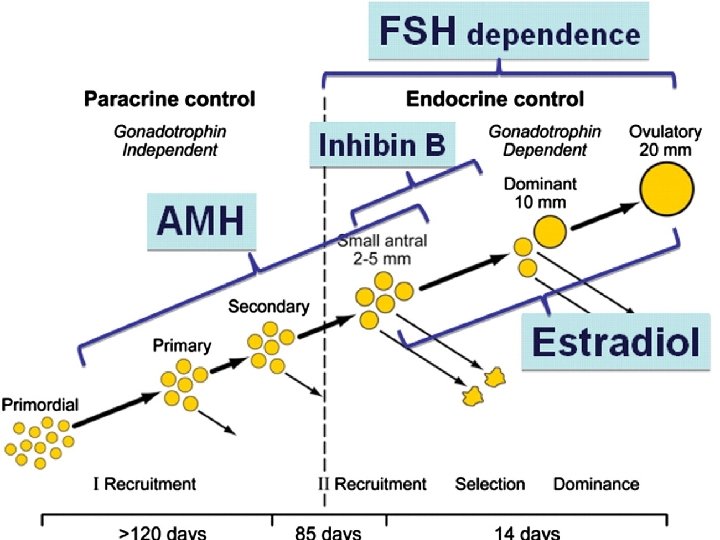 AMH ‘nın Overdeki rolü • Folliküler aktivasyon ve büyümeyi engellemek • FSH ‘ ın uyardığı büyümeyi engellemek • Granuloza hücre büyümesini engellemek • Aromatazı engellemek • Dominant follikül seçimini düzenlemek