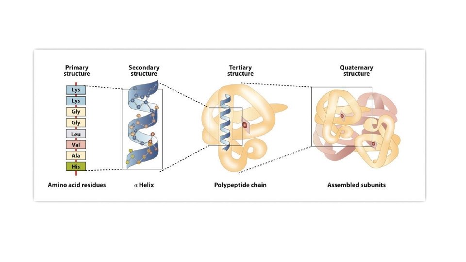 Primary protein structure = sequence of the amino acids G A S D F V Y C Glycine Alanine Serine Aspartate Phenyl- Valine Tyrosine Cysteine alanine Gly Ala Ser Asp Phe Val Tyr Cys