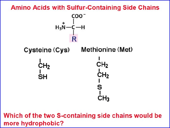 Amino Acids If you want to be a protein biochemist you must know (or if you just want to get a good grade on test): Their names Their structure Their three letter code Their one letter code Their ionization properties Their hydrophobicity and size Their hydrogen bonding properties Their other chemical properties such as ability to be post-translationally modified