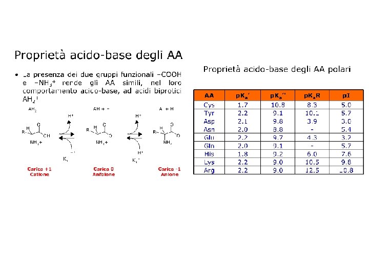 Aminoacidi con residui polari con carica positiva p. K = 10, 5 Gr. Guanidinico p. K= 12, 3 Gr. imidazolico p. K =6 Aminoacidi con residui polari con carica negativa Hanno p. K tra 3. 9 e 4. 3