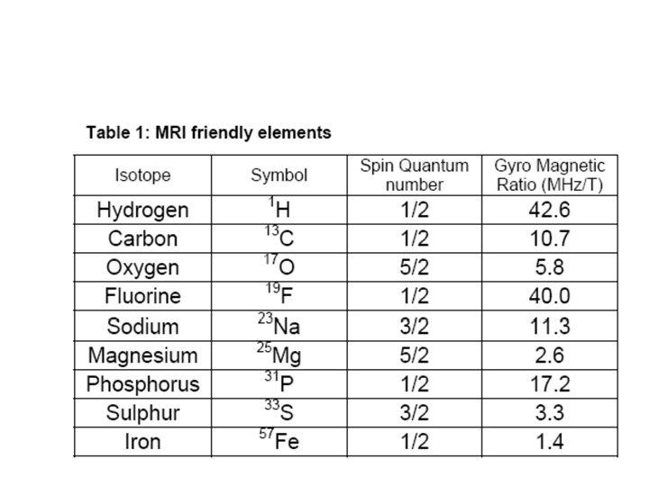 • If we have a MRI system of 1. 5 Tesla then the Larmor or precessional frequency is: 42. 57 x 1. 5 = 63. 855 MHz. • The precessional frequencies of 1. 0 T, 0. 5 T, 0. 35 T and 0. 2 T systems would work out to be 42. 57 MHz, 21. 285 MHz, 14. 8995 MHz and 8. 514 MHz respectively.