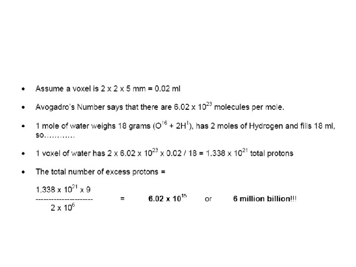 • The excess amount of protons aligned parallel within a 0. 5 T field is only 3 per million (3 ppm = parts per million), in a 1. 0 T system there are 6 per million and in a 1. 5 T system there are 9 per million. So, the number of excess protons is proportional with B 0.