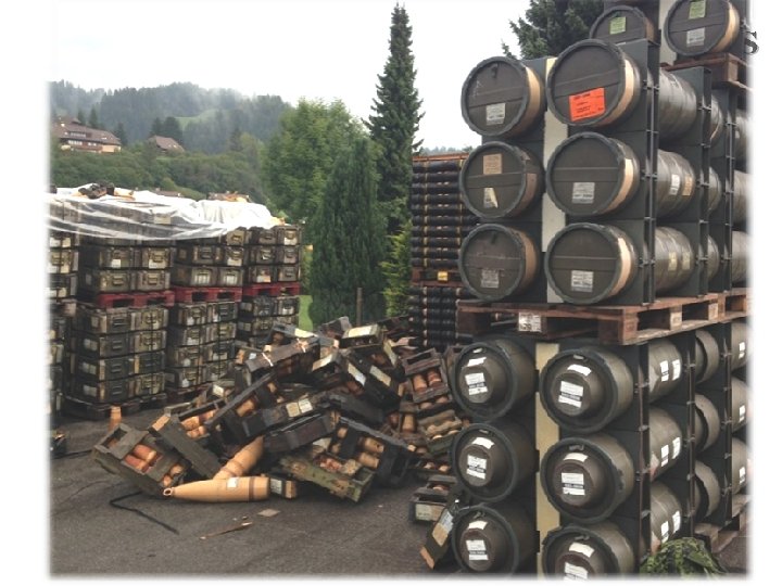 Why? • With effective ammunition management systems in place: • The military command always knows what ammunition it has, where it is, and whether it is safe to use. • Unsafe ammunition is destroyed before it can explode and risk a civil disaster. • The ammunition is not stolen or informally sold and used to threaten the state by criminals or extremists. • The ammunition stores are not easy for the enemy to compromise or otherwise attack.