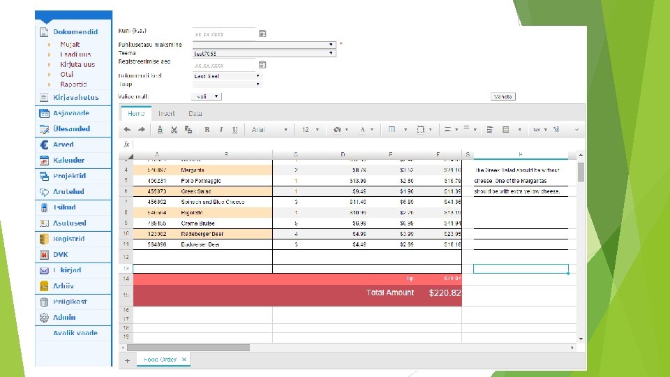Tabelarvutuse komponent (v. 10. 7) Exceli tabelitest andmete kopeerimine Valemite kasutamine Xslx mallide kasutamine PDF eksport Kuluaruanded Lähetusaruanded Tööaruanded Jne Spreadsheet component