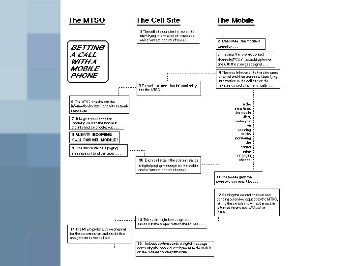 Receiving a Call Outline • • 1: 2: 3: 4. Registration with the network and idling. Paging Dial Tone / SAT / Blank and Burst /Ring Answer the call