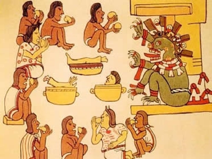 Religião Asteca • A medicina asteca não reconhecia limites e distinções para com as práticas religiosas. • Curandeiros e sacerdotes integravam uma rica cultura religiosa cercada por vários deuses formadores de uma complexa mitologia fornecedora de sentido a vários eventos e dados da cultura asteca. • Em algumas festividades, o sacrifício e o derramamento de sangue humano integravam os rituais astecas.