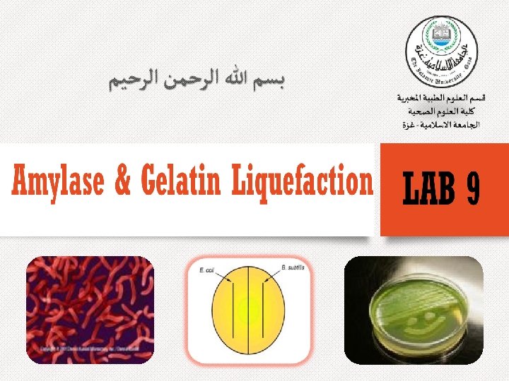 The Gelatin Stab Method 1) Inoculate nutrient gelatin deep tubes (contain 12% gelatin) and incubate for up 30 days. 2) To determine whether liquefaction has occurred place the tube in the refrigerator for 30 minutes 3) Remove and check the tube for liquefaction. if negative, continue incubation until liquefaction occur. ØIf the gelatin is still intact (the bacteria did not produce gelatinase), the media will solidify in the refrigerator and a negative test result is recorded. ØIf the organism has produced sufficient gelatinase, the tube will remain liquid (at least partially) and not solidify in the refrigerator. A positive test result is recorded.