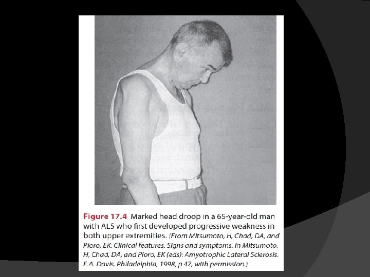 � Motor neuron diseases (MND) � Lou Gehrig’s disease � Degeneration and loss of motor neurons in the spinal cord, brain stem and brain, resulting in a variety of UMN and LMN clinical signs and symptoms.