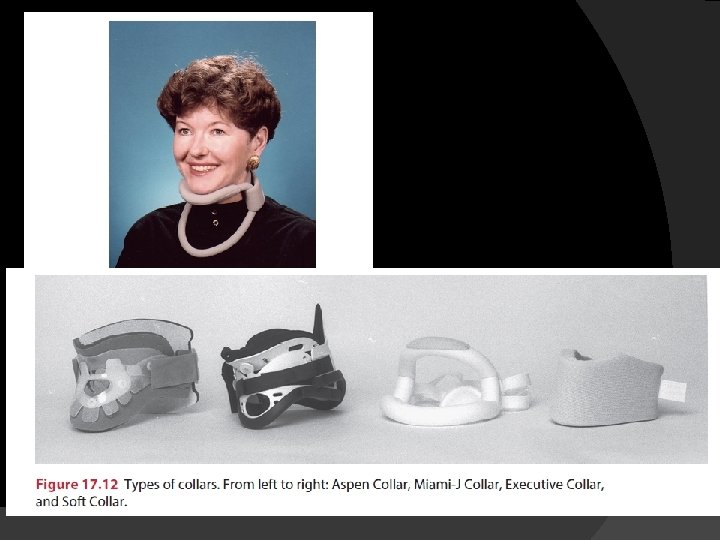 Type of Semi rigid and Rigid Cervical Collars Examples Advantages Disadvantage Collars Without Anterior neck access PHILADPHIA® Collar (A) Offers good Support Patient may feel confined may cause pressure on trachea patient may experience difficulty breathing or swallowing can be uncomfortably warm Collars with anterior neck access(for tracheotomy) Miami-j® Collar(B) Aspen Collar© Malibu Collar(D) Padding absorbs and wicks moisture away from skin suitable for individuals with cervical weakness in all 3 planes Patient may feel confined may be uncomfortably warm more expensive May put pressure on chin and Canadian collar(E) sternum Headmaster Collar(E) Open design allow for Some models more expensive circulation of air light Some models require custom weight cutting No pressure on Not adequate if rotation and trachea some lateral flexion weakness is also patients consider present collar more cosmetically appealing