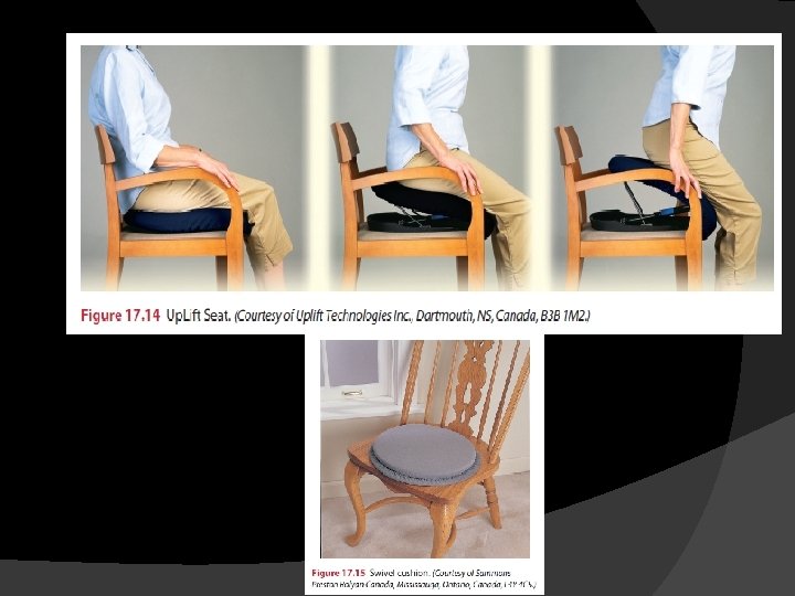 Middle stage Common impairments and functional limitations Interventions Middle Progressive decrease in mobility throughout stages Wheelchair needed for long distances; Increased wheelchair use toward end of stage Serve muscle weakness in some groups; mild to moderate weakness in other groups Progressive decrease in ADKL skills throughout stage Plan Compensatory Support weak muscles(assistive and supportive devices, adaptive equipment, slings, orthoses) Modification to work place /home (e. g, install ramp, move bedroom to first floor) Wheel vchair prescription Education of caregiver regarding functional training Preventative Active 172 active assistive , and passive ROM, stretching exercise Stretching exercise 142, 169, 1709 early middle) Endurance ecercise 171(early middle) Determine need for pressure-relieving devices(e. g. , pressure distributing matteress)