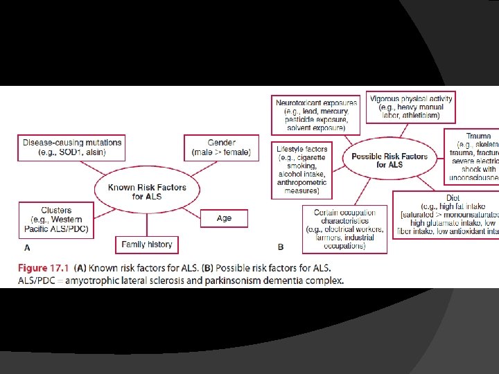 � Incidence; range of 0. 4 to 2. 4 cases per 100, 000, with the incidence � Prevalence; 4 to 10 cases per 100, 000 � The average at onset is the mid-tolate 50 s � Affects men slightly more than women � In about 5% to 10% of individuals the disease is inherited as an autosomal dominant trait