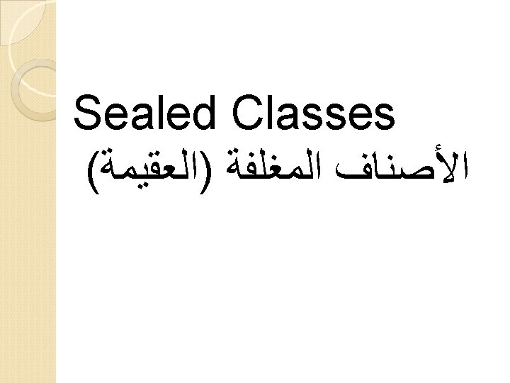 In contrast to an abstract class, a sealed class does not allow classes to derive from it at all (to prevent inheritance). You can only create instances of objects from the sealed class. The sealed keyword placed before the class declaration. ﺍﻟﺼﻨ ﻣﻦ ﻧﻮﻉ abstract ﺑﺎﻟﻤﻘﺎﺭﻧﺔ ﻣﻊ ﺍﻟﺼﻨ ﻣﻦ ﻧﻮﻉ ﺼﻨﺎ ﺑﺎﻻﺷﺘﻘﺎﻕ ﻣﻨﻪ ﻣﻄﻠﻘﺎ )ﻟﻉ ﺍﻟﻮﺭﺍﺓ ﺃﻲ ﻻ ﻣ ﻟ ﻸ sealed ﺍﻟﻜﻠﻤﺔ. ﻳﻤﻜﻨﻨﺎ ﻓﻘﻂ ﺗﻜﻮﻳﻦ ﻛﺎﺋﻨﺎﺕ ﻣﻨﻪ. ( ﻳﺼﺒﺢ ﺍﻟﺼﻨﻒ ﻋﻘﻴﻤﺎ . ﺗﺿ ﺇﻋﻼ ﺍﻟﺼﻨ sealed ﺍﻟﻤﺤﺠﻮﺯﺓ