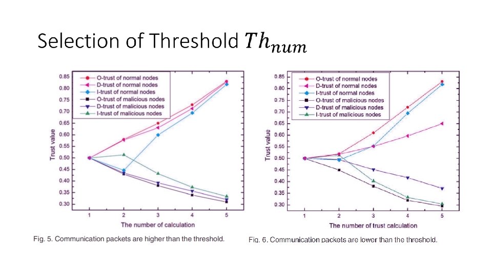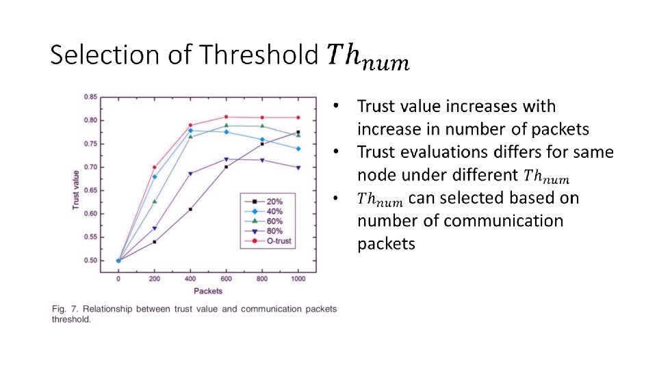 Recommendation Trust • Special type of direct trust • Important to disregard false recommendations • Subject node selects recommenders with trust value lager than threshold 0. 5 • Recommendation request message is sent by subject node (multi-cast) • Id of B is included in the message • Qualified neighbor nodes respond if they have recommendation • False recommendations are filtered