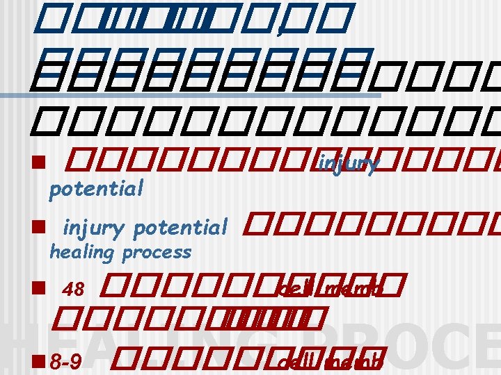 ������� n Galvanic, HVGC, IDC n n ������� 0. 2 -1 m. A ������� , �������� n sterile technique ������� : HEALING PROCE n notophoresis, whirlpool, exs etc.