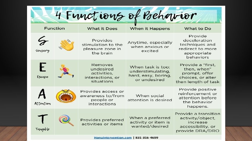 HYPOTHESIZING FUNCTION OF BEHAVIOR • Function is the “why” of behavior, or what maintains the student’s maladaptive behavior. • Remember, all behavior is communication!
