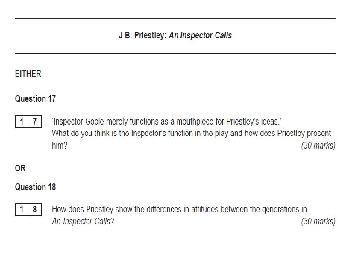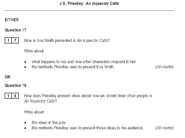 Inspector Goole – Key Lines • Select a variety of quotes (C) from Acts 1 and 2 which give us an insight into the ‘philosophy’ of Goole and explain what these lines reveal to the audience. • Language? (B) • Structure? (A)