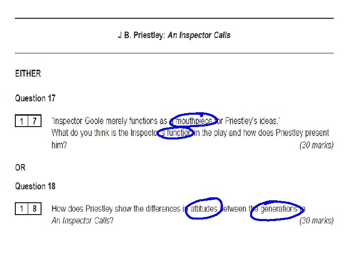 Inspector Goole – Key Lines • Select a variety of quotes (C) from the play which give us an insight into the ‘philosophy’ of Inspector Goole and explain what these lines reveal to the audience. • Language? (B) • Structure? (A)