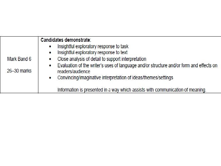 To get an A… • In your own words, explain…. (D) + • Using a variety of quotes, describe…. (C) + • Is there any language that implies anything? (B) + • How is the structure of the play relevant to what you have written? (A)