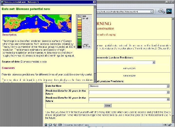 Building a web interface • WP 3. 3 main aim is to develop a Web interface to the existing stand-alone prototype modelling system – allow the viewing of available input data and existing model results – allow users to alter climate change scenarios and input data and view the effects on land use change and land degradation