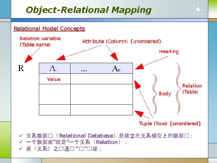 Object-Relational Mapping Why ORM ? Productivity and maintainability Modeling mismatch ORM Performance Database independency