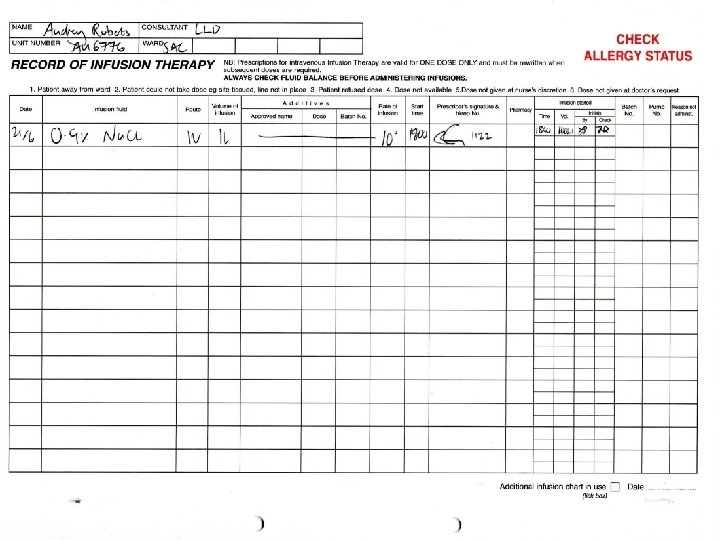 Questions What is wrong with the IV therapies Chart? • No Fluid challenge only eventual increase of IVI flow then stopped. • Hartmann's solution prescribed.
