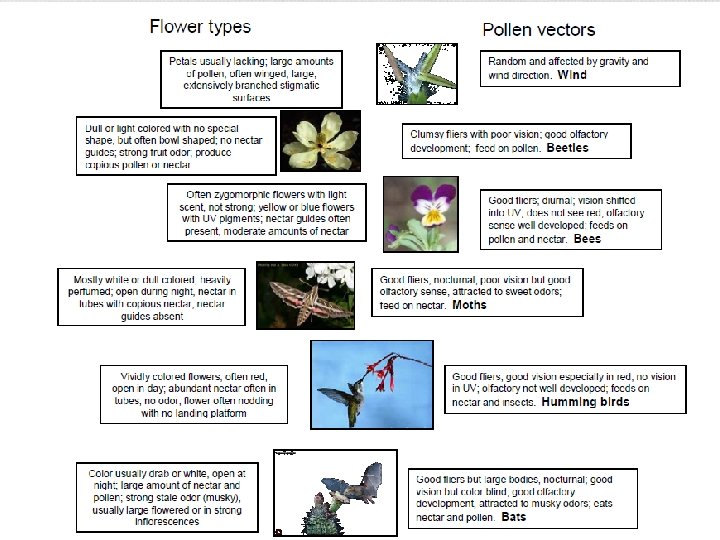 Bird Pollination • Birds often pollinate red flowers • Animal pollinators have coevolved with plants