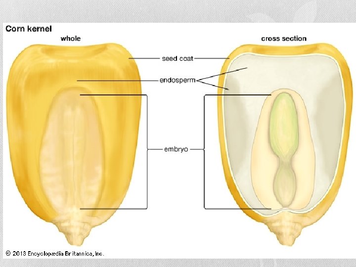 Double Fertilization • One sperm cell fuses with egg (fertilization) and results in the formation of a diploid zygote • A second sperm fuses with two polar nuclei which results in a triploid (3 N) endosperm • The endosperm provides nutrients (starch) and surrounds the developing embryo